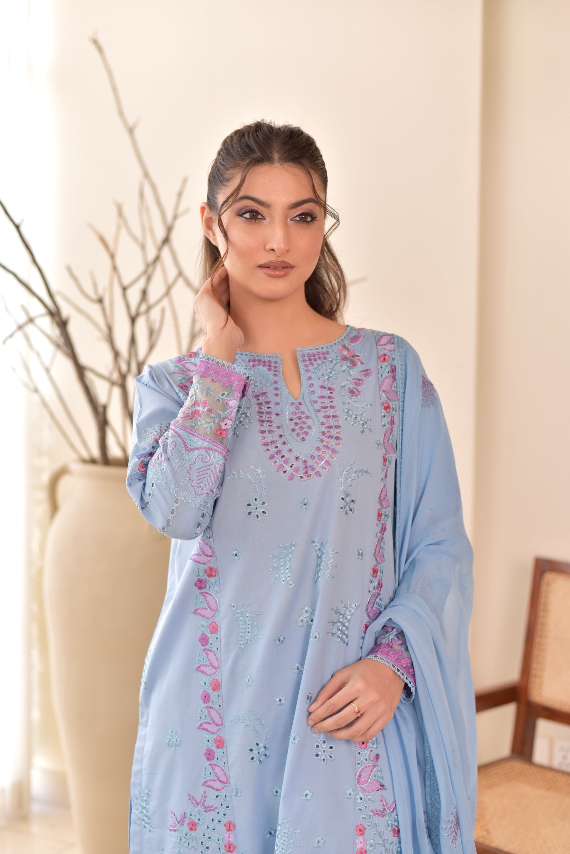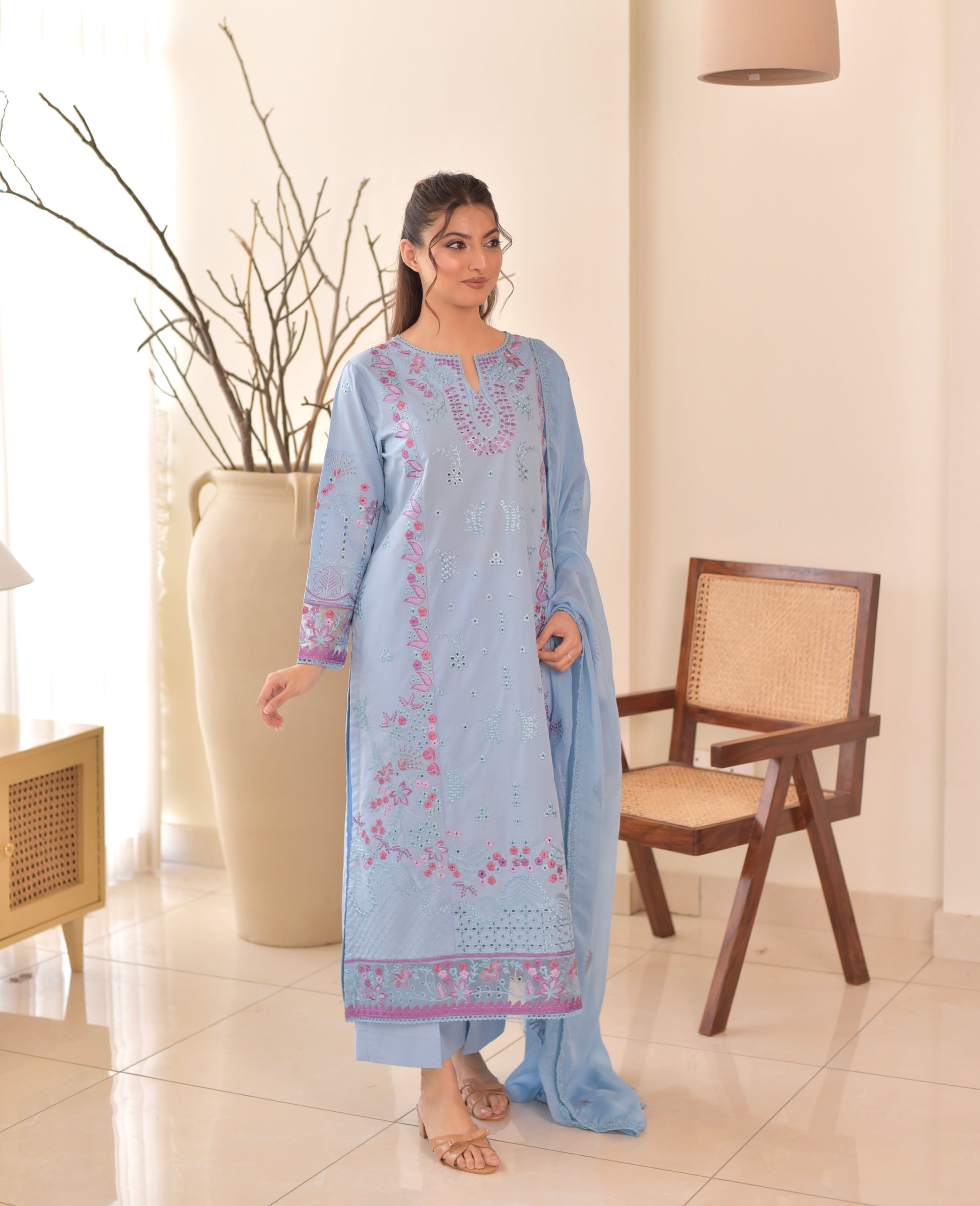 - Embroidered shirt with embroidered organza patch detail in sleeves and daman