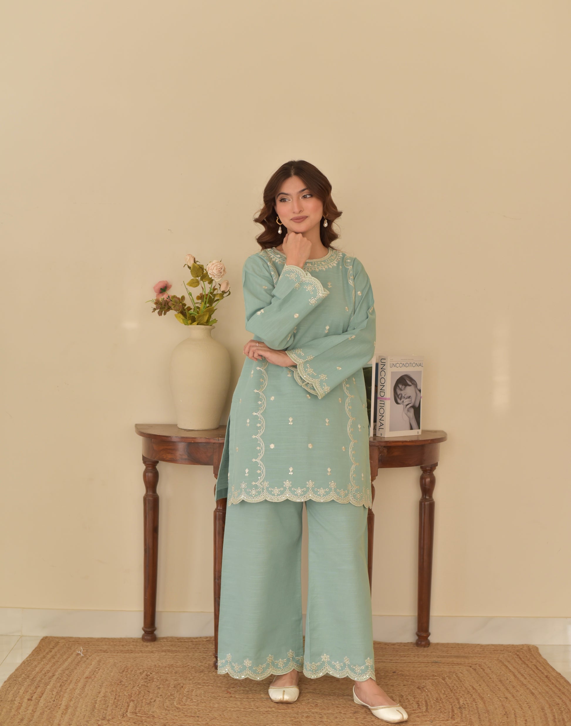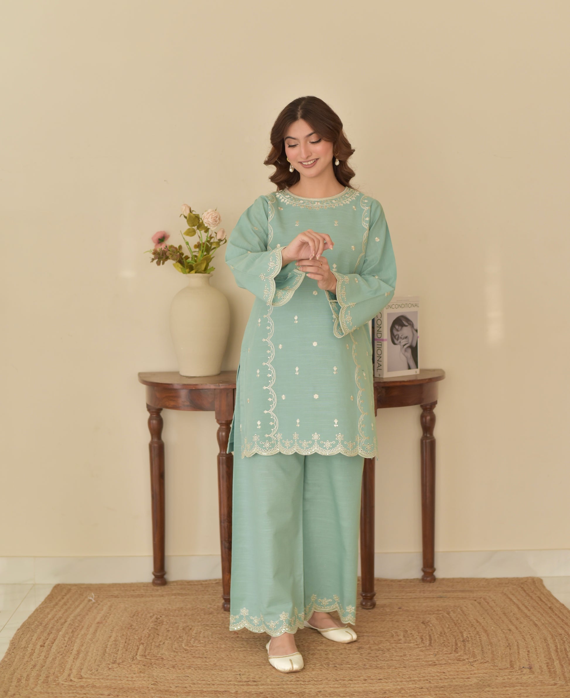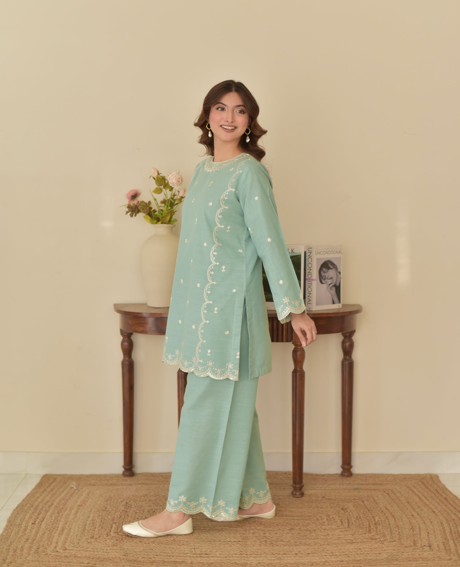 - Embroidered shirt with sequin work