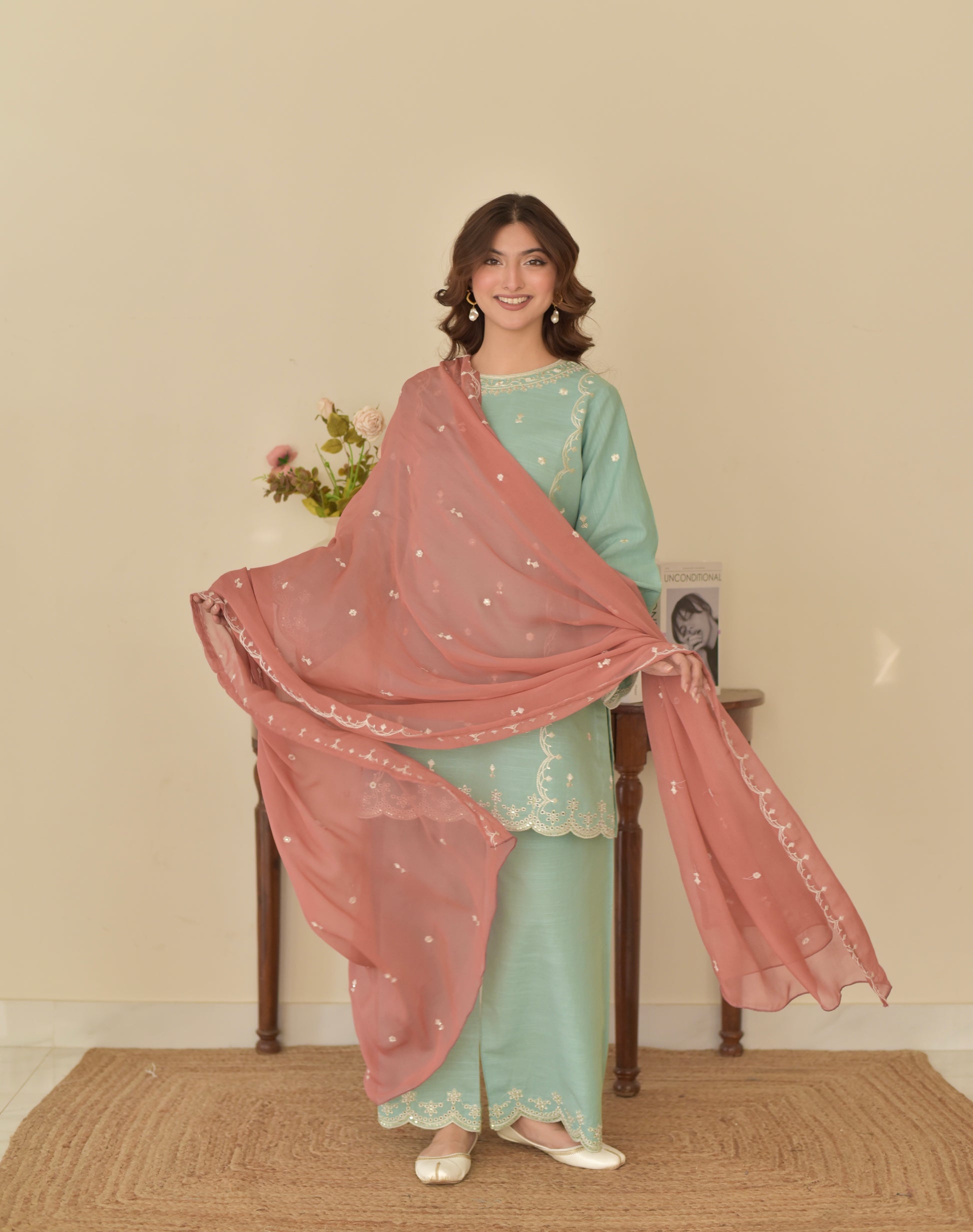 - Embroidered chiffon dupatta